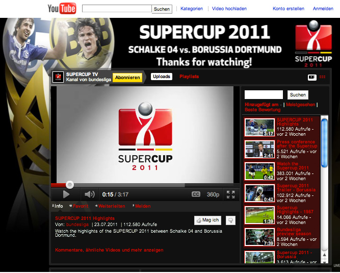 Im Auftrag der DFL wurde für das Spiel zwischen FC Schalke 04 und Borussia Dortmund ein eigener YouTube-Channel erstellt. Neben der grafischen Gestaltung wurde in der Zusammenarbeit mit der DFL und Google auch der LAOLA1 LIVE-Player für den Live-Stream auf Youtube.com/bundesliga verwendet. Das Spiel zwischen den beiden Traditionsvereinen wurde in der von LAOLA1 gewohnten Qualität dynamisch gestreamt. Heißt nichts anderes, als dass die Qualität des Streams sich an die bestmögliche Internetverbindung des jeweiligen Users angepasst hat.