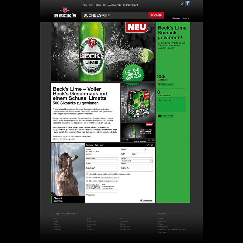 Die Gewinne sind auf die Ausrichtung der einzelnen Phasen abgestimmt. So stand im ersten Schritt das Kennenlernen des Produkts im Vordergrund. Eine breite Masse an Usern konnte bereits im Juni exklusive Probier-Sixpacks des neuen Beck’s Lime gewinnen. Im Juli fiel der Startschuss zur zweiten Phase, in der sich der Fokus nun bereits weiter bewegte. Die User wurden aufgerufen, preis zu geben, was ihr persönlicher Kick in der Stadt ist. Der glückliche Gewinner durfte sich über eine Beck’s gebrandete Vespa freuen. Ziel dieser Aktion war, Beck’s Lime hier erstmals in Verbindung mit dem urbanen Lifestyle zu bringen.