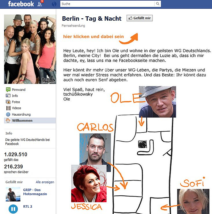 "Berlin – Tag & Nacht" ist laut einer Pressemeldung von RTL2 nicht nur im TV, sondern auch bei Facebook ein Erfolg. Über eine Millionen Fans verzeichne die kreative Facebook-Seite des Vorabend-Formats mittlerweile.