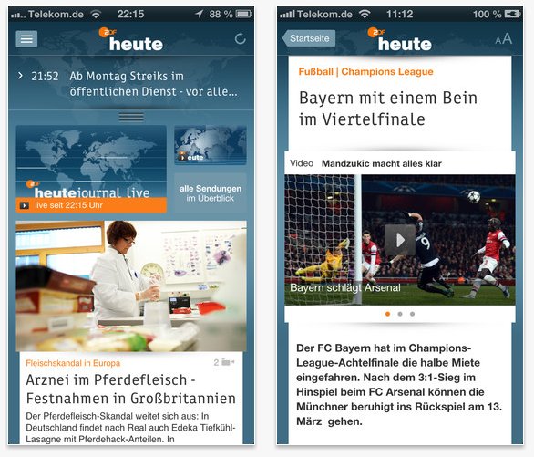 Wer die heute-App bereits auf dem Smartphone installiert hat, erhält die system-übliche Nachricht über ein Update, das auf dem Gerät zu installieren ist. Tablet-Nutzer, die die App bislang noch nicht geladen haben, finden sie hier für Apple und hier für Android.