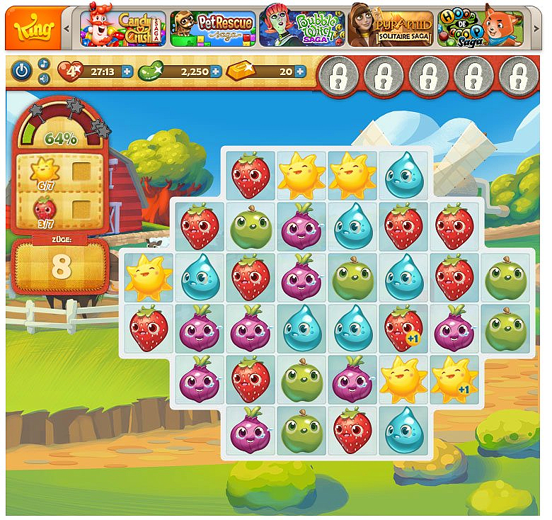 Das „Free-to-Play“-Spiel Farm Heroes Saga ist online unter apps.facebook.com/farmheroes abrufbar.