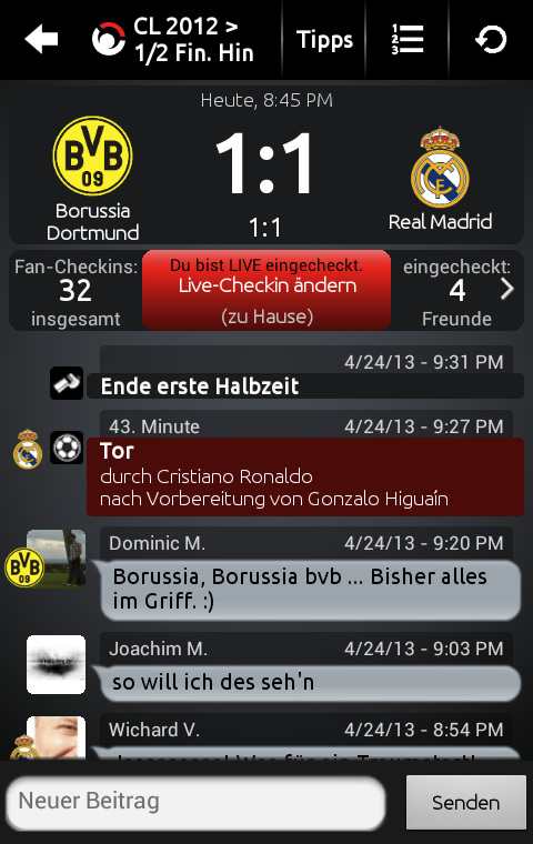 Features der Mobile-Branche wie Social TV, Second Screen, Check-In, Loyalty und E-Commerce sind Features der Fantomic Plattform, die als rein mobile Version entwickelt wurde. Die App liefert kostenlos einen Live-Ticker mit Chat-Funktion zu allen Spielen der 1. Bundesliga, 2. Bundesliga, DFB Pokal, Champions League, Europa League und der WM-Qualifikation mit Ergebnissen und Tabellen.