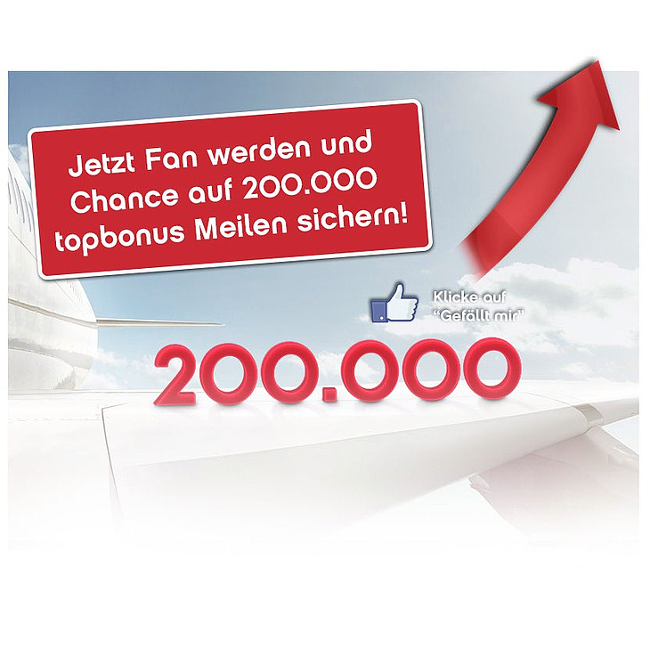 Die deutsche Airline startet aus diesem Anlass eine PR-Aktion, bei der sie sich bei ihren Fans mit einem Gewinnspiel bedankt, bei dem insgesamt 200.000 topbonus Prämienmeilen verlost werden.
