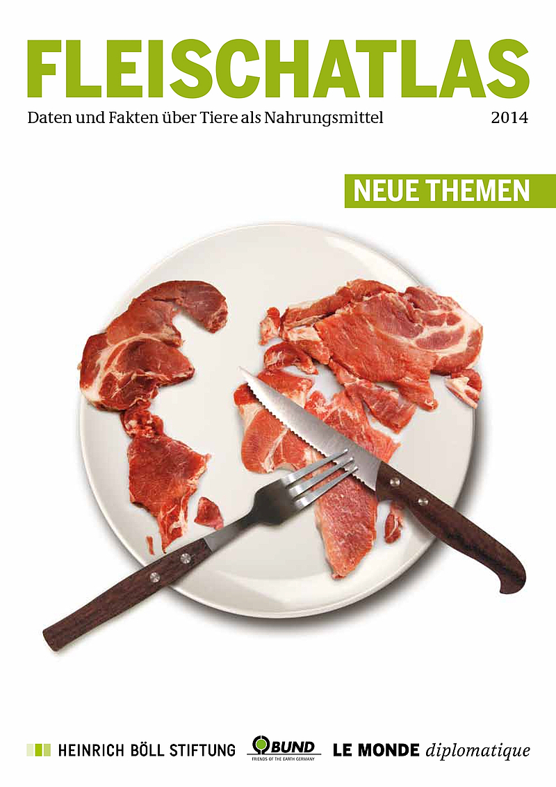 dem 50-seitigen "Fleischatlas 2014". Das von der Heinrich Böll Stiftung, dem BUND und "Le Monde diplomatique" herausgegebene Werk liefert "Daten und Fakten über Tiere als Nahrungsmittel", so der Untertitel. Eine erste Ausgabe des "Fleischatlas" erschien im Januar 2013. Sie war ein großer Erfolg, bis Dezember druckte der Verlag sechs Auflagen. Während der erste "Fleischatlas" nur der Abonnementsauflage von "Le Monde diplomatique" beilag, wird die Ausgabe 2014 auch im Einzelverkauf gemeinsam mit der Monatszeitung ausgeliefert. Der "Fleischatlas" ist damit erstmals im Pressehandel erhältlich.