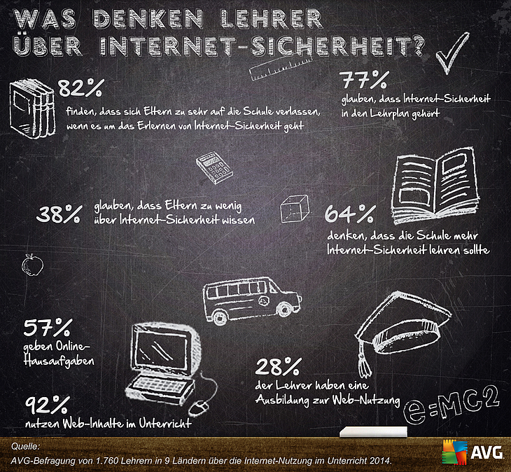 Das würden die Ergebnisse einer Studie von AVG, einen Online Security Anbieter für etwa 187 Millionen aktive Nutzer, belegen. Demnach gaben 82 Prozent der befragten Lehrer an, dass Eltern sich beim Thema Online-Sicherheit für Kinder zu sehr auf die Schulen verlassen.