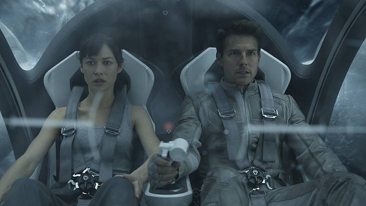 Jack (Tom Cruise) und seine Partnerin Victoria (Andrea Riseborough) gehören einem Techniker-Korps an, das die verbliebenen Ressourcen auf der Erde für den Neubeginn sichern soll. Gemeinsam leben und arbeiten sie in einer Art gläsernem Loft über den Wolken.Kurz vor dem Ende ihrer Mission entdeckt Jack eine abgestürzte Raumkapsel, neben der er eine Überlebende (Olga Kurylenko) findet. Durch die Geschichte der jungen Frau, die vorher in seinen Träumen auftauchte, sieht Jack nicht nur die Mission, sondern sein gesamtes Weltbild in Frage gestellt.